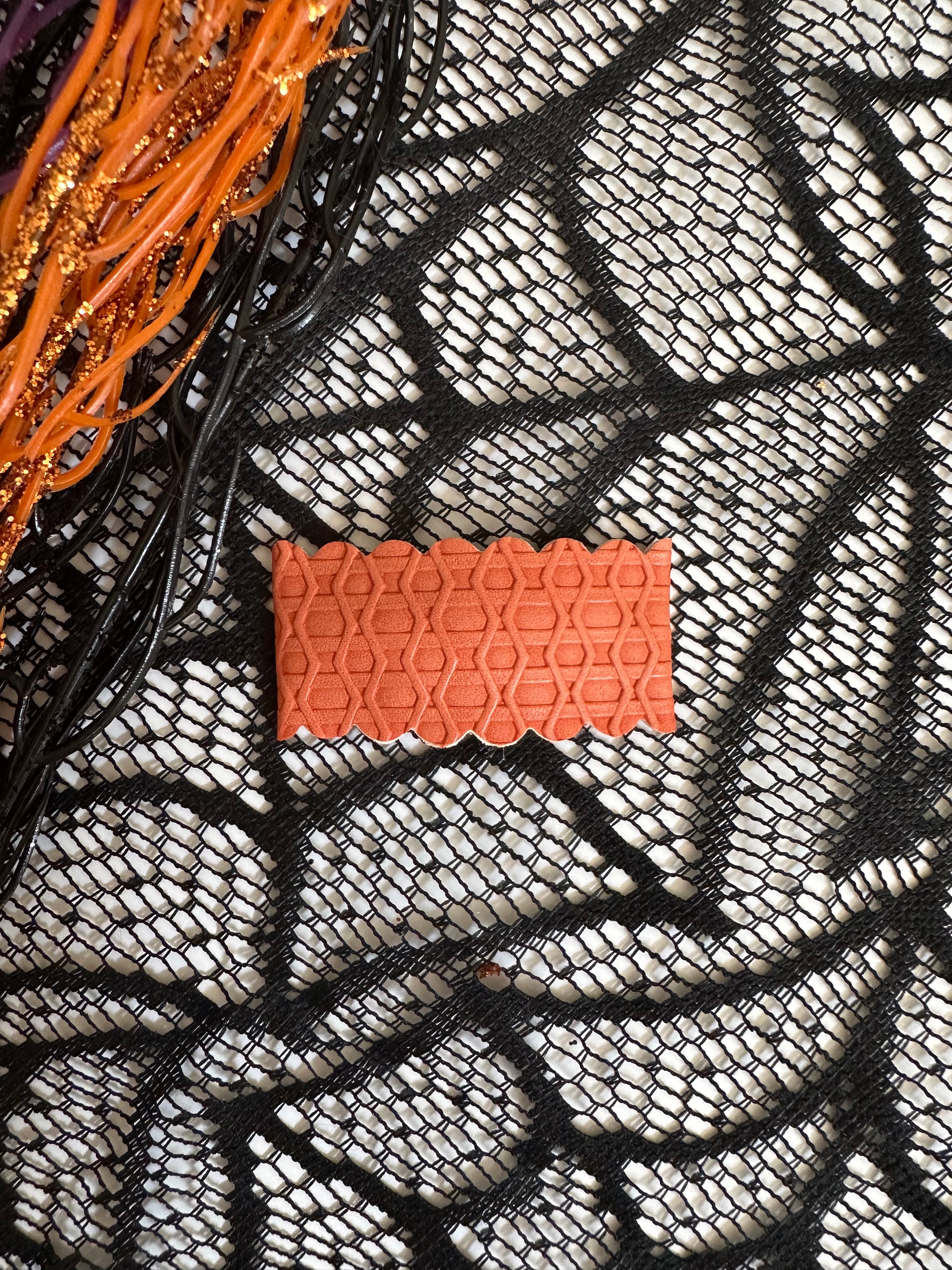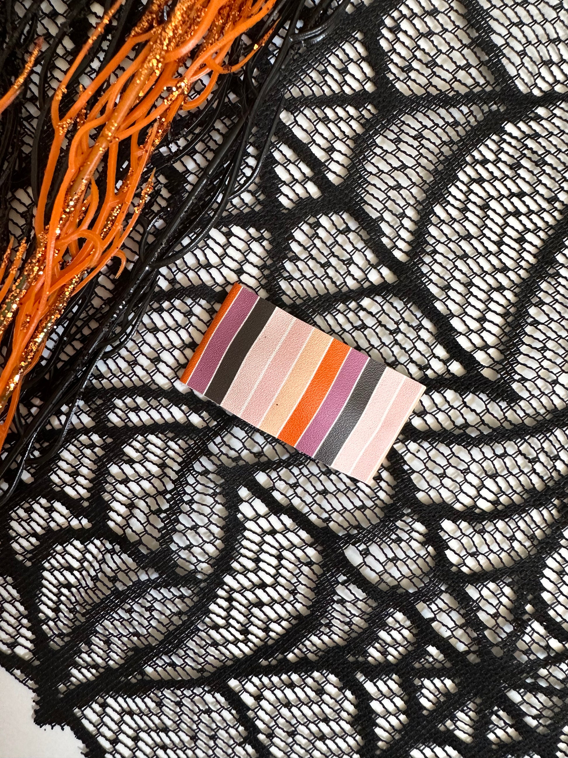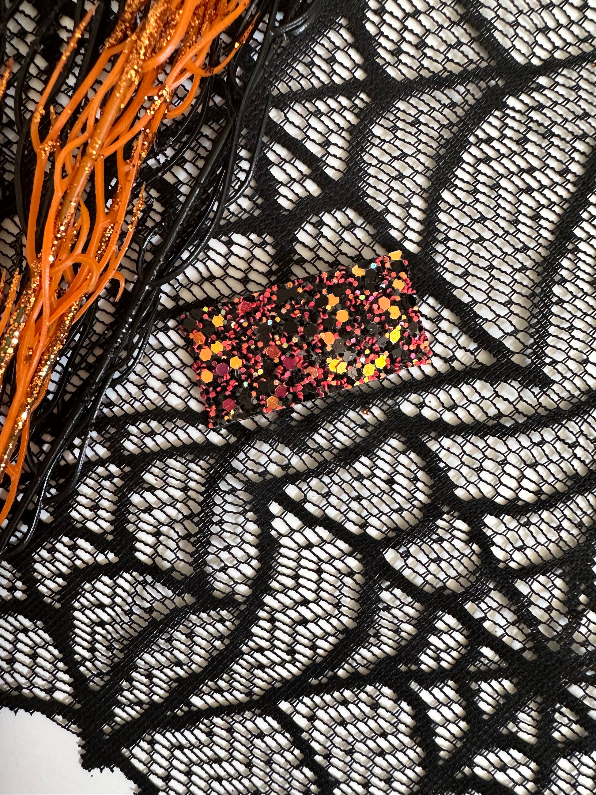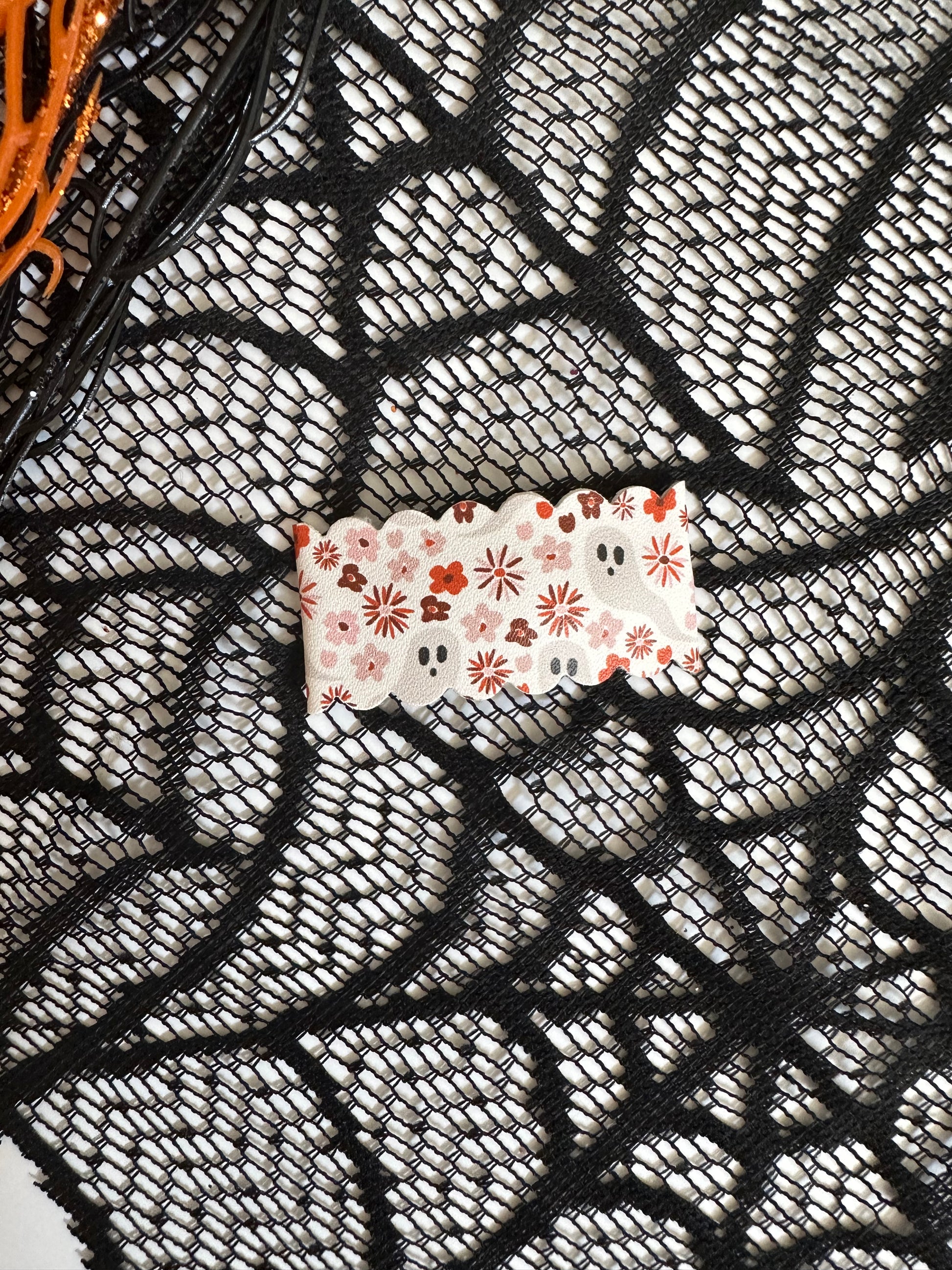 Halloween is coming! Buy our spooky set featuring Haunting Fun prints and sparkle! Handmade Barrett/Clip fully wrapped in Vegan Leather or glitter fabric. Buy one, or buy them all! You'll love these on your littles! These clips measure 1 in x2in. Clips can be purchased in sets or individually as listed. Measurements 1x2 inches Metal Clip - with no slip grip Light weight Cute designs *Note: Design/fabric placement will vary by clip.